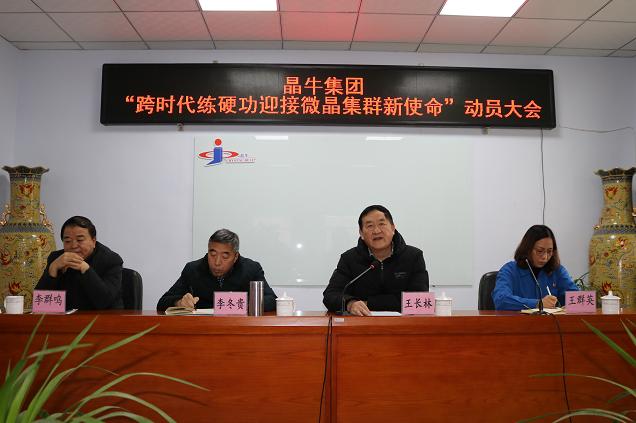 新舊之交,最是一年感懷時(shí)。12月31日下午,晶牛集團(tuán)在一樓西會(huì)議室召開主題為“跨時(shí)代、練硬功、踐行微晶集群新使命”動(dòng)員大會(huì)。會(huì)議由集團(tuán)黨委書記王群英主持,集團(tuán)董事局主席王長(zhǎng)林作主旨報(bào)告,集團(tuán)副科級(jí)以上干部、中級(jí)職稱以上人員參加會(huì)議。