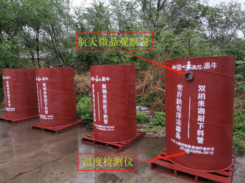 3年前,晶牛集團開發出“四耐”微晶下料管解決了上述問題,經過3年時間國內100多條水泥生產線的應用需求反饋,2019年12月,晶牛集團對一代微晶下料管做了進一步的結構優化升級,將集團研發的熱不漲、冷不縮、可透光、可透視并耐千度高溫的世界首創的低膨脹航天微晶玻璃嫁接到下料管上,推出了具有可耐高溫、可控窯內正負壓力的多項功能航天微晶整體下料管(以下簡稱新型下料管)。